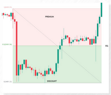 On daily charts: Split dealing range in half (above 50% = premium, below = discount).
