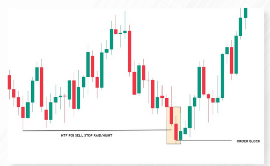 Large accumulation of orders at a specific level (last candle before market-structure shift).
