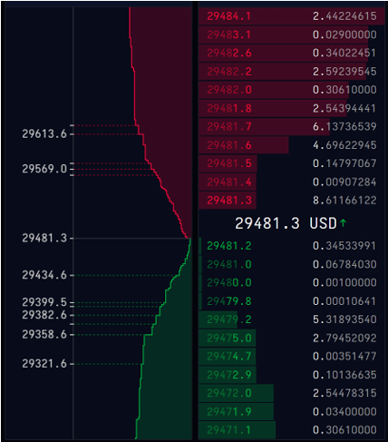 - On the ask side, the lowest asks appear at the top.