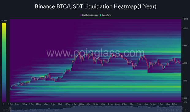 - ● Bright clusters: Areas with a high concentration of liquidations.