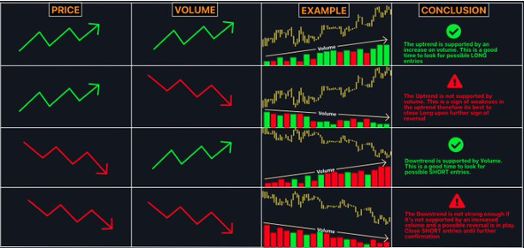 When volume declines while prices rise, it often signals that the uptrend is losing strength, increasing the chances of a reversal. On the other hand, rising prices with increasing volume confirm strong bullish momentum and a healthy uptrend.