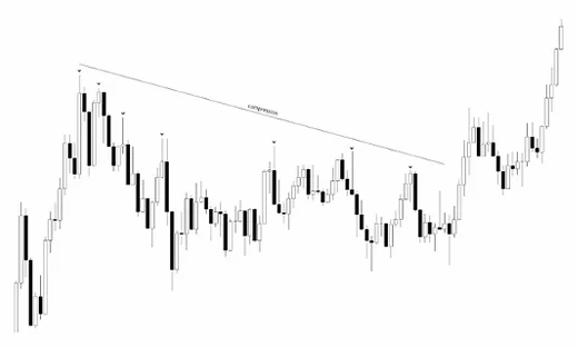 Compression refers to a sequence of highs and lows that form during corrective movements between key structural points.