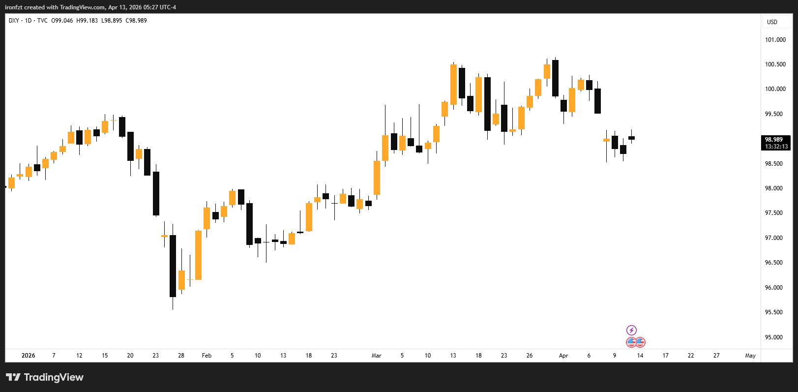 | DXY | ~99.0 | Reclaiming 99 | Safe-Haven Bid |